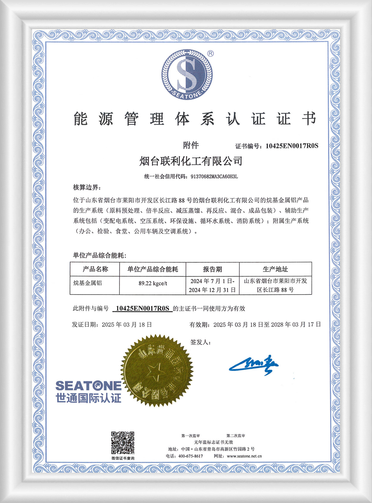 能源管理體系認證證書